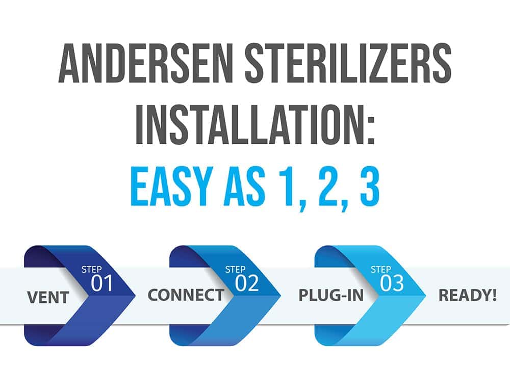 You’re not going to believe how simple Andersen Sterilizer installation is. In fact, it’s the easiest in the industry! As easy as 1, 2, 3.
